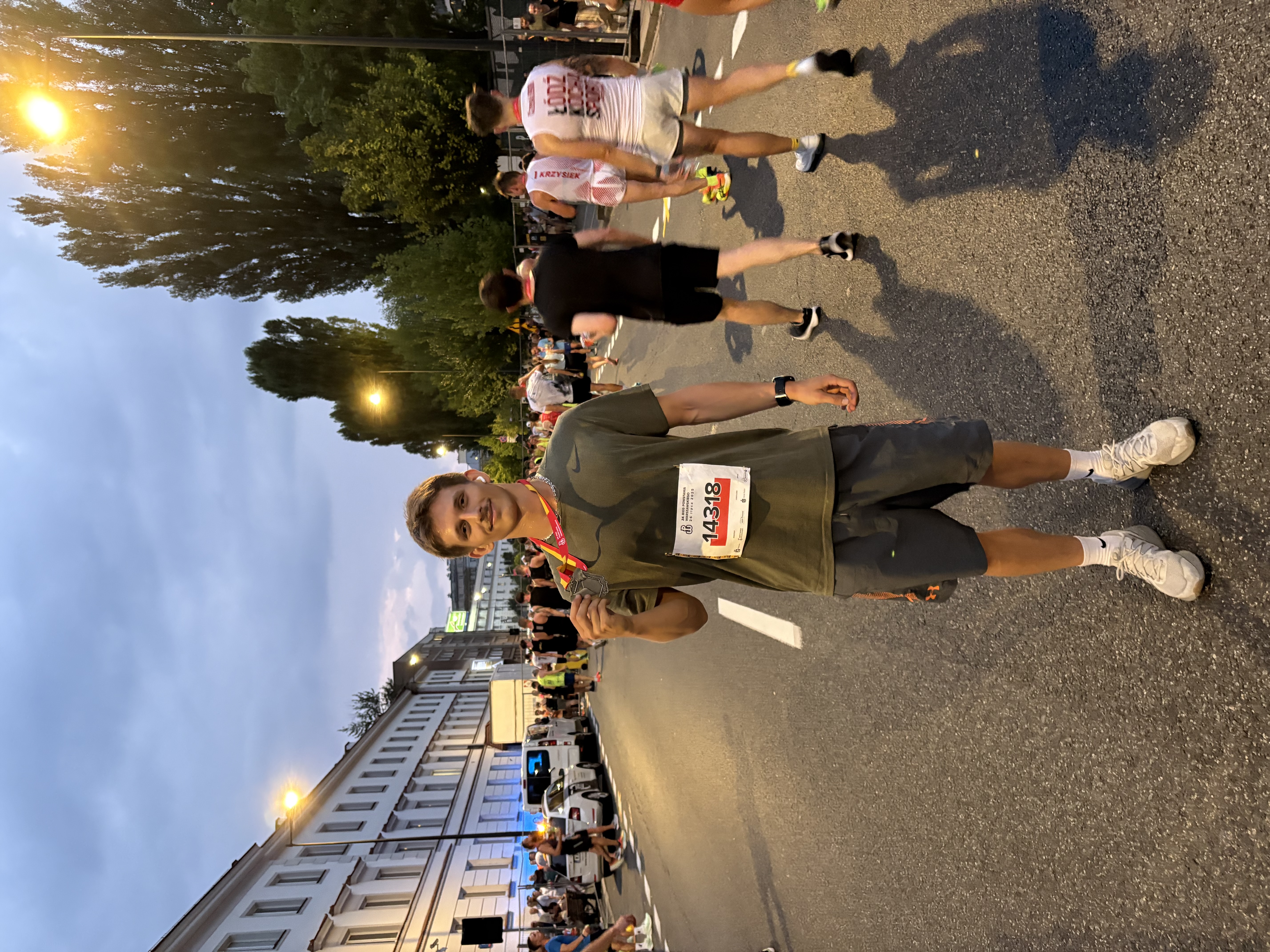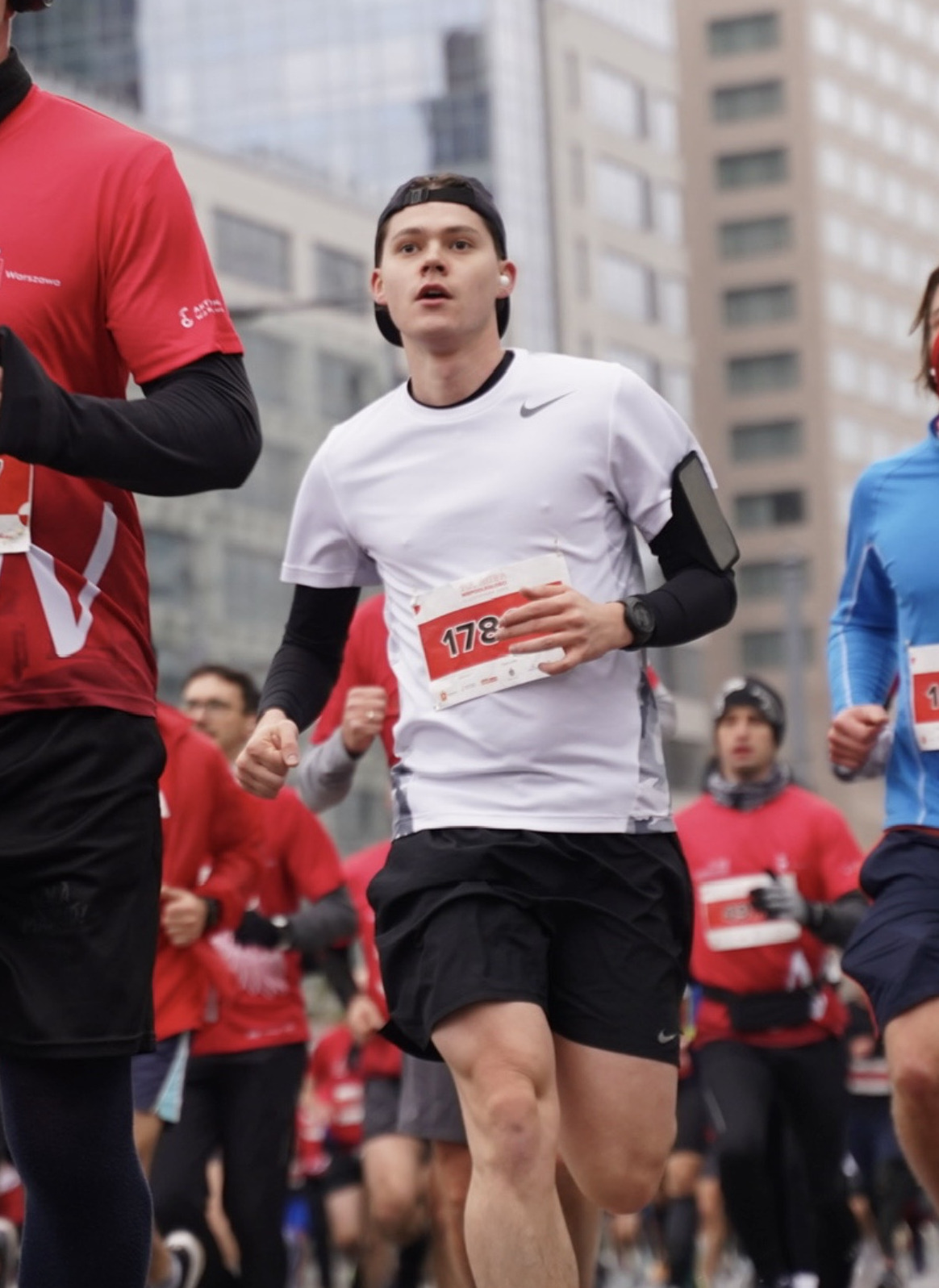 Mam na imię Kacper i mam 23 lata. Biegać zacząłem kilka lat pózniej po prawie 10 letniej przygodzie z piłką zakończoną urazem który wyeliminował mnie z grania na dłuższą metę. Na początku bieganie było dla mnie tylko formą rozruchu, jednak z czasem przyszła ochota na coś więcej. Po swoim pierwszym starcie na zawodach na 10 kilometrów odezwałem się do Wojtka z polecenia znajomego. Od tamtego czasu stało się to dla mnie rutyną oraz dobrą zabawą. Wojtek jest człowiekiem orkiestrą, od bycia super trenerem do osoby odpowiedzialnej za twój mental. Od kiedy zaczęliśmy współpracę moje wyniki znacznie się poprawiły, dla przykładu w bardzo krótkim okresie poprawiłem swój wynik na 5 km. Z 21;54 wybiegałem 19;49. Następnym etapem jest podejście do maratonu, a potem czas pokaże. Jednak na ten moment jestem pewny, że ta współpraca przyniesie jeszcze wiele świetnych wyników